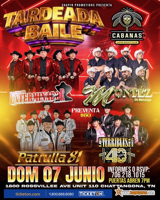 Fiesta de los Perrones-Grupo Exterminador-Montez de Durango-Patrulla 81-Los Terribles del Norte-TARDEADA BAILE-CABANAS