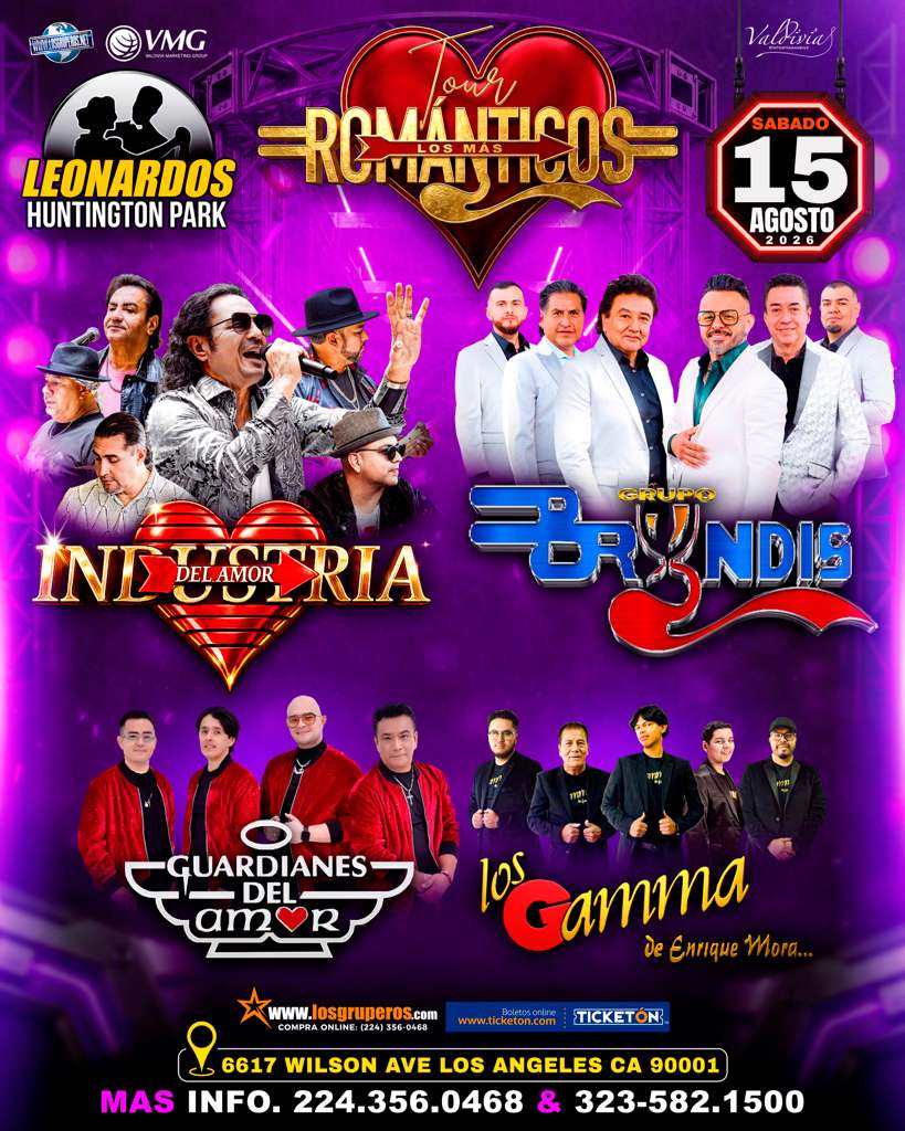 Tour Los Mas Romanticos-Grupo Bryndis-Industria Del Amor-Guardianes del Amor-Los Gamma-Leonardos Huntington Park